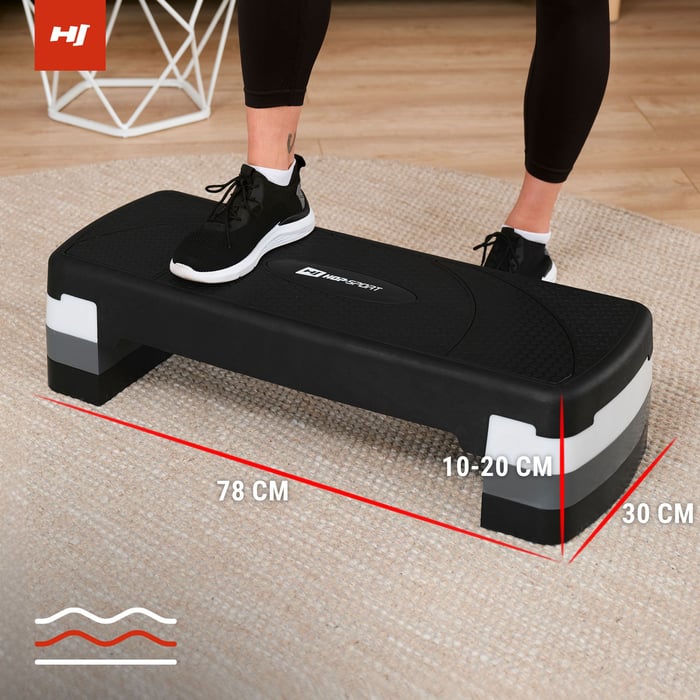 Der Hop-Sport Fitness-Stepper besteht aus sicherem und langlebigem PP-Material, das sich durch eine hohe Widerstandsfähigkeit gegen Beschädigungen auszeichnet. Die rutschfeste Oberfläche sorgt für Stabilität während des Trainings, unabhängig von der Intensität. Daher eignet sich der Stepper sowohl für dynamische Cardio-Übungen als auch für statische Kräftigungsübungen. Mit einer maximalen Belastbarkeit von bis zu 350 kg auf der niedrigsten Stufe ist das Hop-Sport Steppbrett für Menschen mit unterschiedlichen Körpertypen und Fitnessniveaus geeignet.