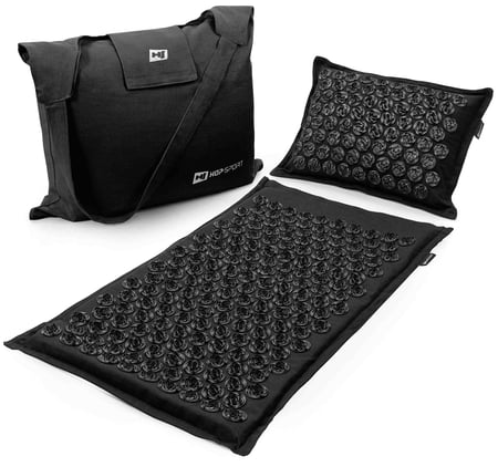 Akupressurset von Hop-Sport, Akupressurmatte mit Kissen, Druckpunkte insgesamt 5800, kostenlose Lieferung, Gratis: Transporttasche, schwarz