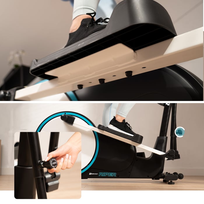 Ein Training auf dem Crosstrainer HS-250C Riper sollte nicht nur fordernd sein, sondern auch komfortabel. Damit dieser Komfort nicht zu kurz kommt, wurde er mit rutschfesten, in zwei Stufen verstellbaren Fuß-Ablageflächen ausgestattet. Halten Sie Ihr Lieblingsgetränk am an der Lenkstange befindlichen.