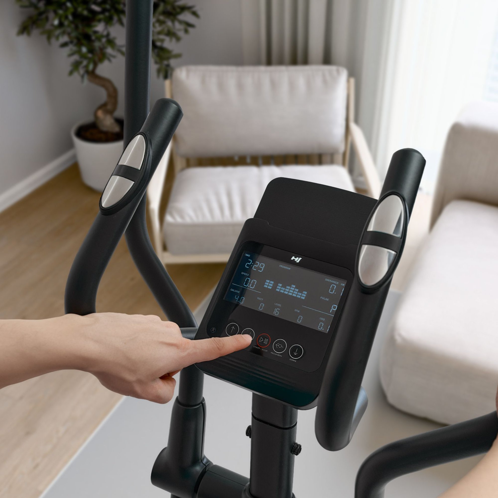 Der klappbare Crosstrainer Floud ist mit einem elektronisch gesteuerten, 32 stufigen magnetischen Bremssystem mit einer Schwungmasse von 15 kg ausgestattet. Ihnen stehen 20 Trainingsprogramme zur Verfügung. Dazu gehören Manual, P1 bis P10, WATT, HRC für pulsbasiertes Training, User zur Erstellung eigener Programme sowie die Body Fat Messung. Durch diese große Auswahl können Sie Ihren individuellen Trainingsplan mühelos gestalten, von der leichten Aufwärmphase über Cardio Einheiten bis zu anspruchsvollem Krafttraining. Der Ellipsentrainer führt Sie strukturiert durch ein vollständiges und durchdachtes Trainingskonzept.