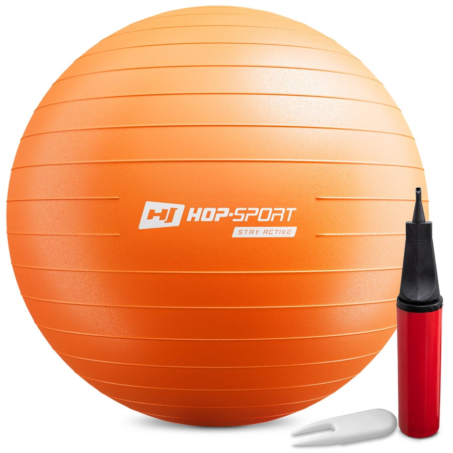 Gymnastikball von Hop-Sport, Gratis Luftpumpe, Max. Belastbarkeit: 100 kg, Großer Anwendungsbereich, 65cm, kostenlose Lieferung, Orange