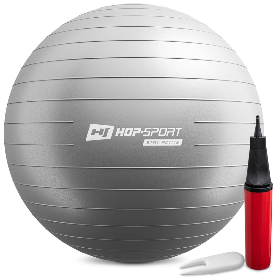 Gymnastikball von Hop-Sport, Gratis Luftpumpe, Max. Belastbarkeit: 100 kg, Großer Anwendungsbereich, 75cm, kostenlose Lieferung, Silber
