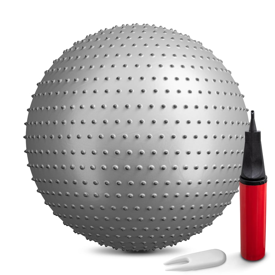 Gymnastikball 65 cm in silber mit Noppen inklusive Luftpumpe für einen optimalen Ganzkörpertraining mit der max. Belastbarkeit bis 100 kg