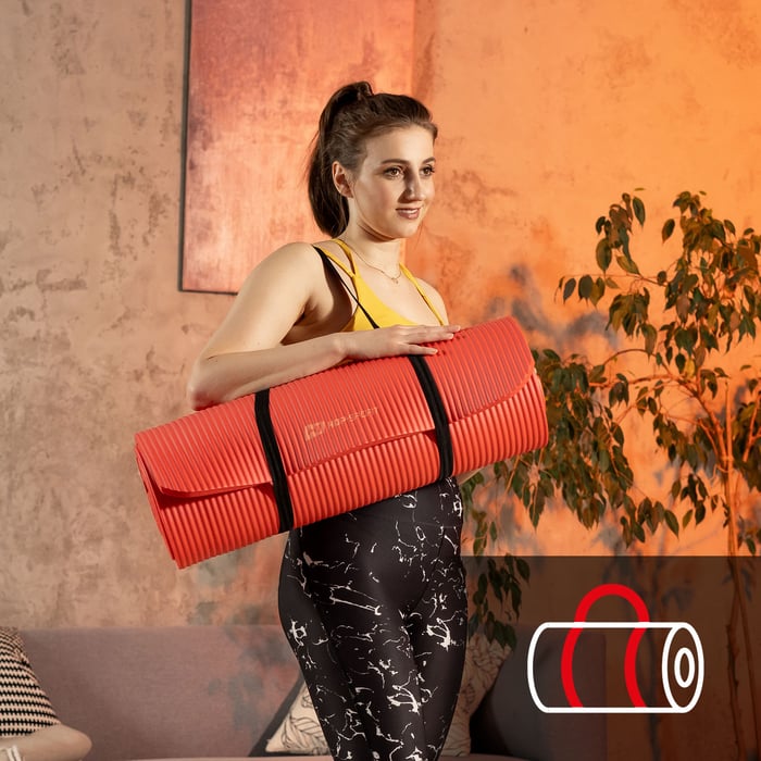 Sie können die Fitnessmatte Hop-Sport bequem zu Yoga- oder Fitnesskursen, in den Park oder an den Strand mitnehmen. Sie brauchen dafür keine spezielle Tasche oder Hülle. Im Lieferumfang der 1,5 cm dicken NBR-Gymnastikmatte ist ein Tragegurt enthalten , mit dem Sie die Matte einfach überall hin mitnehmen können.