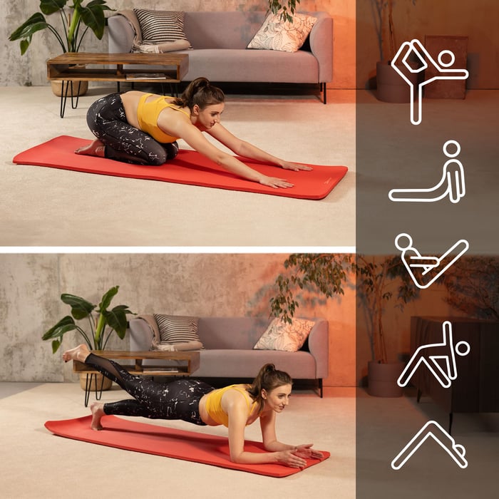 Wenn Ihnen die Bewegungsfreiheit bei der Ausführung einzelner Körperstellungen auf einer Matte wichtig ist oder wenn Sie beim Group Fitness Training zusätzlichen Platz schaffen wollen, ist die 190 x 80 cm große Matte eine tolle Wahl! Trotz ihrer größeren Größe (als die handelsüblichen 180 x 60 cm Matten) ist die Gymnastikmatte Hop-Sport leicht und handlich – sie wiegt nur 1450 Gramm! Die Dicke von 1,5 cm bietet eine hervorragende Bodenisolierung und verhindert effektiv die Entstehung von Schürfwunden.
