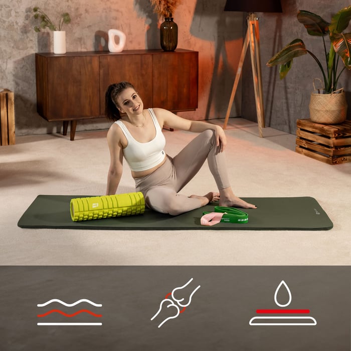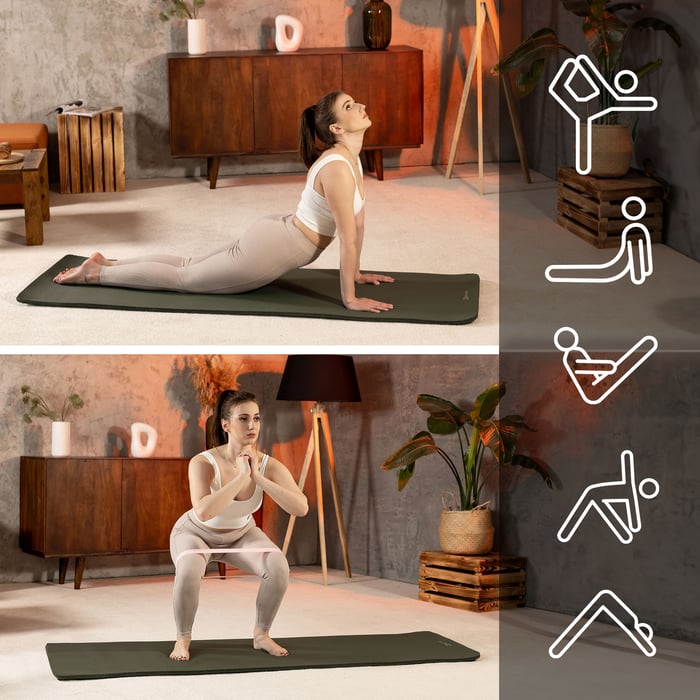Die 1 cm dicke NBR-Fitnessmatte ist für verschiedene Trainingsarten geeignet. Sie können darauf sowohl Yoga und Pilates trainieren als auch so genannte Low-Impact-Übungen wie Plank, Beugen und Bauchmuskelübungen ausführen. Die Kombination aus der Dicke von 1 cm und den größeren Abmessungen der Matte sorgt für Komfort und Sicherheit bei jeder Trainingseinheit. Zudem bietet die einzigartige Struktur der Matte eine hervorragende Griffigkeit, die wiederum eine stabile Körperhaltung und eine präzise Ausführung komplexer Bewegungen oder Asanas ermöglicht.