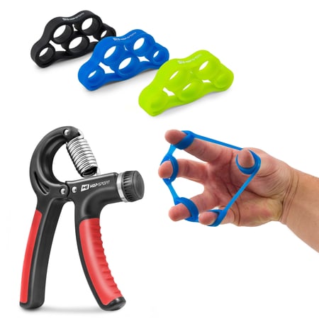 Der Handtrainer HS-P040HG und der Fingertrainer HS-M003FT sind in einem Set erhältlich und beinhalten einen verstellbaren Handmuskeltrainer (10 bis 40kg) und den Fingertrainer für das Training Ihrer Hände und Finger. Vor allem wenn Sie Verletzungen an Fingern, Händen, Handgelenken oder Unterarmen davontragen mussten, ist dieses Zubehör-Set die richtige Wahl, da es Sie bei der Rehabilitation und der Erholung nach den Verletzungen extrem unterstützen. Mit dem Einsatz von Handtrainern stärken und formen Sie die Unterarm- und Handgelenksmuskulatur und verstärken Ihre Griffkraft.