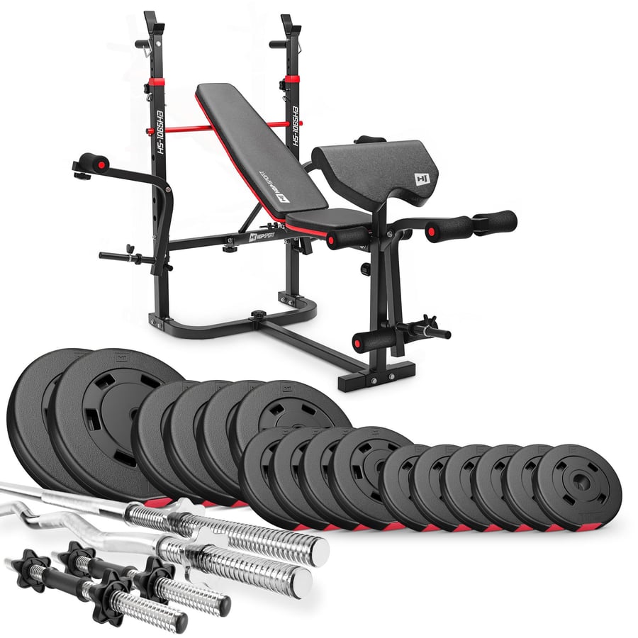 Bist Du auf der Suche nach einem geeigneten Gerät, das es Dir ermöglicht, beliebige Muskeln aufzubauen und Dein Workout effektiv und zeitsparend in den eigenen vier Wänden durchzuführen? Mit dem Hantelbank-Set von Hop-Sport bekommen Sie eine vollausgestattete Ausrüstung für das Training zu Hause. In erster Linie steht die Hantelbank, mit der Sie eine Vielzahl von Übungen durchführen können um mehrere Muskelgruppen Ihres Körpers mit ein und demselben Gerät zu trainieren. Sie werden ein neues Trainingsgefühl erleben, da die extreme Vielseitigkeit Sie begeistern wird.