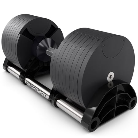 Das moderne, elegante Design macht die Hantel nicht nur zu einem Hingucker in jedem Trainingsraum, sondern garantiert auch ein angenehmes Handling. Sie nimmt deutlich weniger Platz ein als ein traditionelles Hantel-Set – perfekt für kleine Räume. Die spezielle Ablage sorgt zusätzlich für Ordnung und Übersicht am Trainingsplatz.