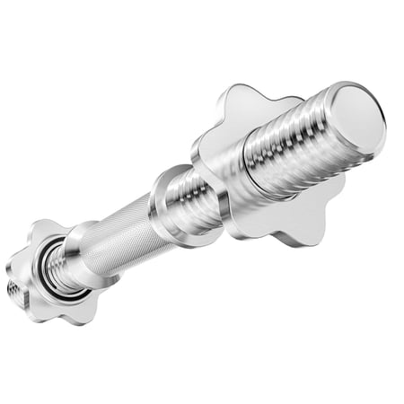 Die Außenenden der Kurzhantelstange sind mit speziellen Gewinden ausgestattet. Die Gewichte, welche auf ihnen Ihrerseits angebracht werden, sind mit zusätzlichen Sternverschlüssen fest verschraubt. Somit gibt es keine Gefahr, dass auch bei intensivsten Trainingseinheiten die Gewichte schwingen oder verrutschen können. Um noch zusätzliche Stabilität und Sicherheit zu garantieren, sind in den Sternverschlüssen Gummidichtungen verbaut. Eine weitere Gummidichtung befindet sich auf der Gewindestange. Dazwischen sind die Gewichte positioniert.