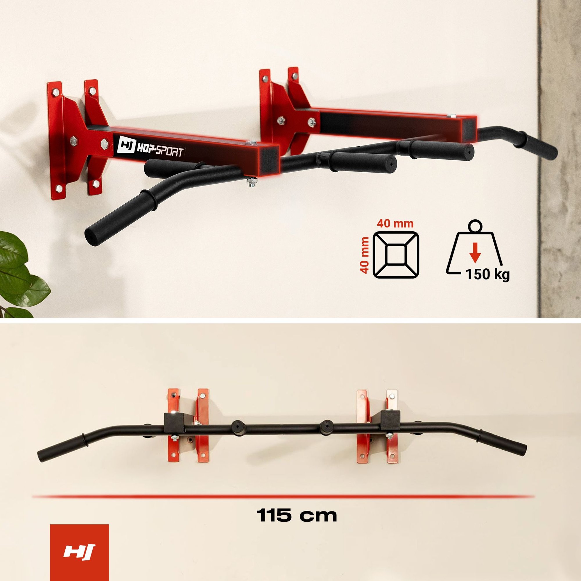 Die HS-2006K Klimmzugstange ist eine robuste, für intensive Workouts entwickelte Konstruktion. Gefertigt aus stabilen Stahlprofilen mit 40×40 mm Querschnitt, bewältigt sie hohe Belastungen ohne Verformung oder Durchbiegung. Das sechspunktige Montagesystem auf beiden Seiten sorgt für eine sichere Wandbefestigung. Der steife Rahmen minimiert Vibrationen und Verrutschen — selbst bei höherem Benutzergewicht — und ist bis 150 kg belastbar. So bietet die Stange bei jeder Wiederholung Komfort und zuverlässigen Halt, unabhängig vom Trainingsniveau.