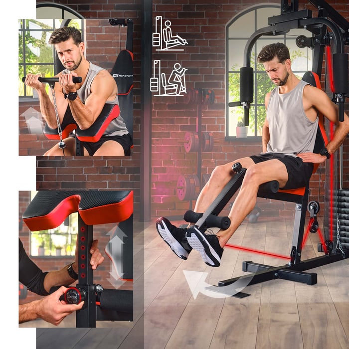 Vergeuden Sie nicht Ihre kostbare Zeit mit Wegen ins Fitnessstudio und Wartezeiten, bis Trainingsgeräte nicht mehr besetzt sind. Holen Sie sich mit der Kraftstation HS-1044K das Fitnessstudio direkt zu sich nach Hause. Diese Kraftstation ist eine multifunktionale Station auf der Sie ohne fremde Hilfe, sicher trainieren können. Zusätzlich ist ein Training auf ihr schonender für die Gelenke als das Heben von freien Gewichten. Es eröffnen sich Ihnen 2 verschiedene Möglichkeiten die Gewichte der Kraftstation zu stemmen (mittels unteren Kabelzug oder oberen Latzug). Seien Sie kreativ und formen mit unterschiedlichsten Übungen den Bizeps (Curlpult), Trizeps, Schulter und Brustmuskulatur (Butterfly), die Bauch- und Rückenmuskulatur (Heben) sowie die Beinmuskulatur (Beinstrecker), die Trainingsintensität wählen Sie dabei selbst.