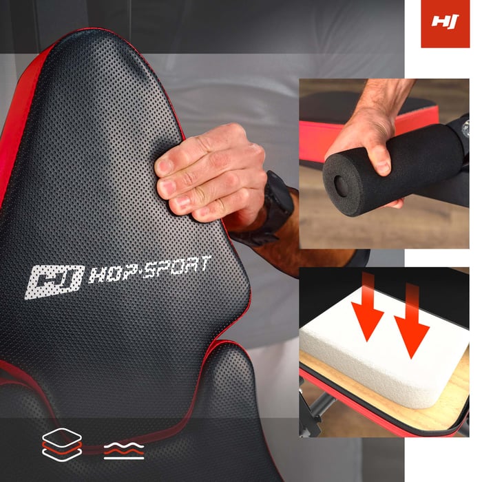 Die Rückenlehne und der Sitz der Trainingsbank im Kraftturm HS-1044K bestehen aus drei Schichten: