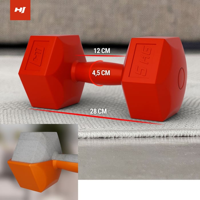 Kurzhanteln 2x5 kg sind ein einfaches und zugleich effektives Fitness-Zubehör fürs Training zu Hause. Damit können Sie Ihre Arm- und Rückenmuskeln stärken und in Form bringen. Nebenbei kann man die Hanteln bei Aerobic, Krafttraining und Rehabilitation einsetzen. Durch die spezielle Hexagon-Form stehen die Hanteln immer fest auf dem Boden und rollen nicht weg. Die Hanteln sind aus hochwertigem Kunststoff gefertigt und daher äußerst robust. Jede Hantel ist mit dem entsprechenden Gewicht gekennzeichnet.