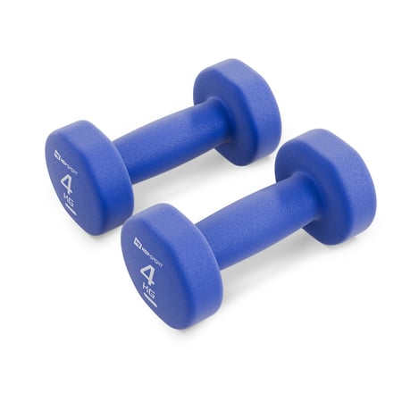 2x4kg Gusseisenhanteln mit einer Schicht aus rutschfestem Neopren. Langlebige, solide gefertigte Hanteln - ideal für das Training zu Hause!