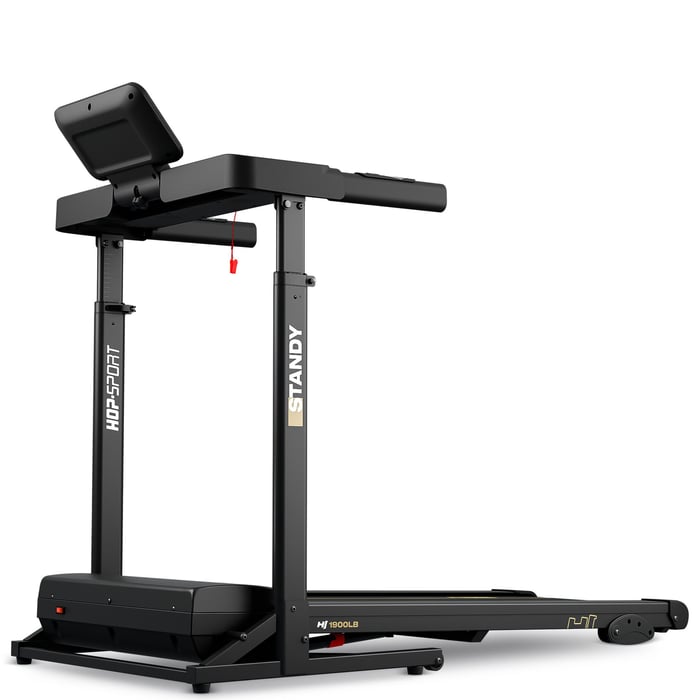 Das elektrische Laufband HS-1900LB Standy ist die ideale Wahl für alle, die zu Hause komfortabel trainieren möchten – ohne komplizierte Bedienung und ohne viel Platz zu benötigen. Der intuitive Trainingscomputer mit Display zeigt Zeit, Geschwindigkeit, Distanz, Kalorien und Puls an. Dank des Bluetooth-Moduls können Sie das Laufband mit den kompatiblen Apps Kinomap, FitShow und Zwift verbinden und so Ihr Training in eine interaktive Strecke verwandeln. Das Bedienfeld lässt sich zudem neigen und als stabile Laptop-Ablage nutzen – perfekt, um während eines ruhigen Spaziergangs zu arbeiten, Serien zu schauen oder zu lernen. Der kraftvolle AC-Motor mit 1,5 PS sorgt für einen gleichmäßigen Lauf im Bereich von 1–14 km/h, während die dreistufige Steigungsverstellung die Trainingsintensität mühelos erhöht. Die komfortable Lauffläche von 120 × 40 cm, die einstellbare Panelhöhe und die rutschfeste Oberfläche garantieren ein angenehmes und sicheres Training. Nach dem Workout können Sie das Laufband dank Transportrollen schnell zusammenklappen und verstauen.