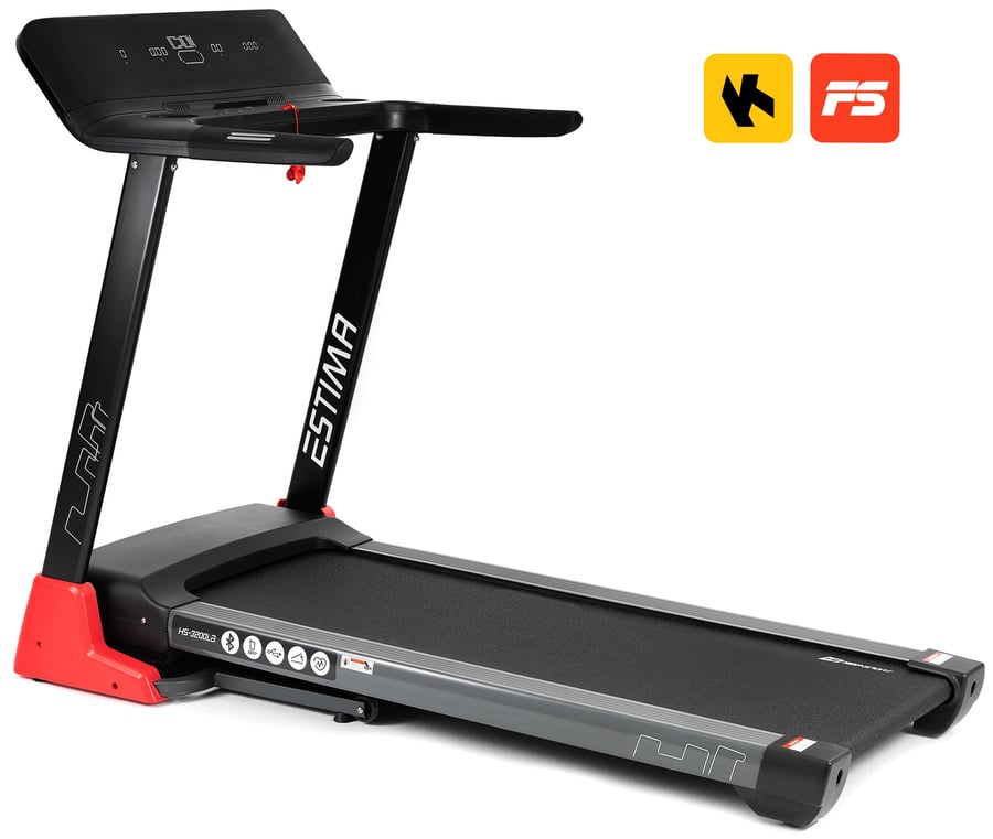 Elektrisches Laufband HS-3200LB Estima: zusammenklappbares Gerät mit automatischer Steigungsverstellung bis 15 %, Dämpfungssystem, 3-PS-Motor und 15 Trainingsprogrammen.