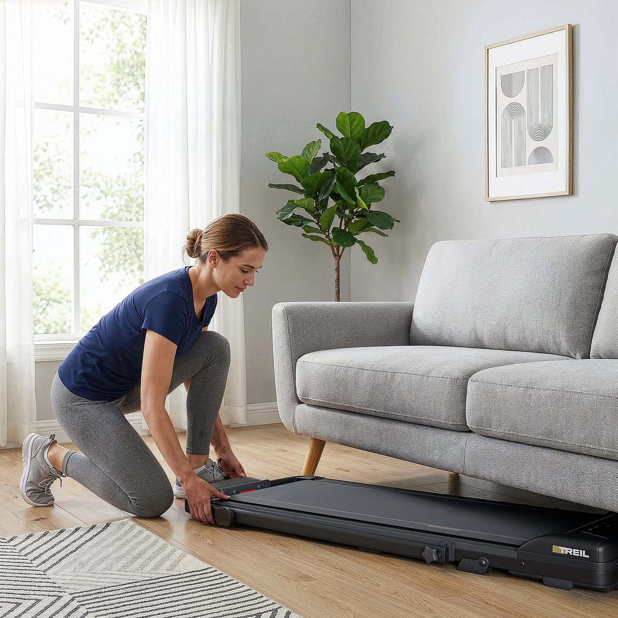 Das breite Laufband (105 × 40 cm) bietet ausreichend Raum für natürliches Laufen und bequemes Gehen. Der DC-Motor mit 0,94 kW / 1,00 HP sorgt für einen gleichmäßigen und leisen Betrieb, und der Geschwindigkeitsbereich von 1–6 km/h passt sich jedem Nutzer an. Die manuelle Neigungsverstellung erhöht die Trainingsintensität und ermöglicht das gezielte Stärken verschiedener Muskelgruppen. Die maximale Belastbarkeit von 120 kg garantiert Stabilität und Sicherheit. Ein kompaktes Laufband für die Wohnung, das wenig Platz benötigt und dennoch vollen Trainingskomfort bietet.