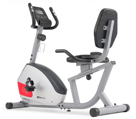 Liegeergometer HS-035L Solo mit verstellbarem Sattel, Trainingscomputer mit Tablethalterung, Schwungmasse 10kg, perfektes Fitnessgerät für zu Hause, silver