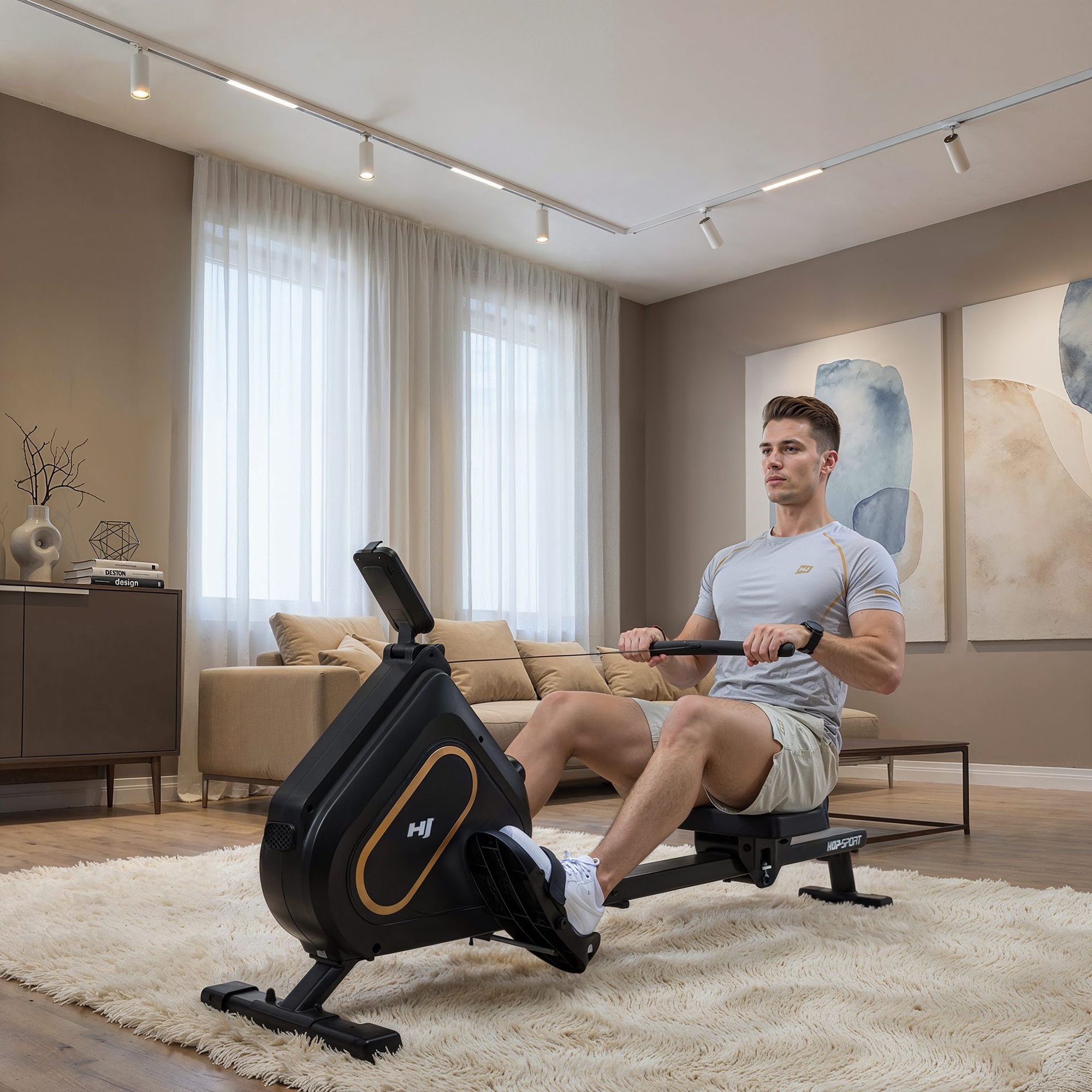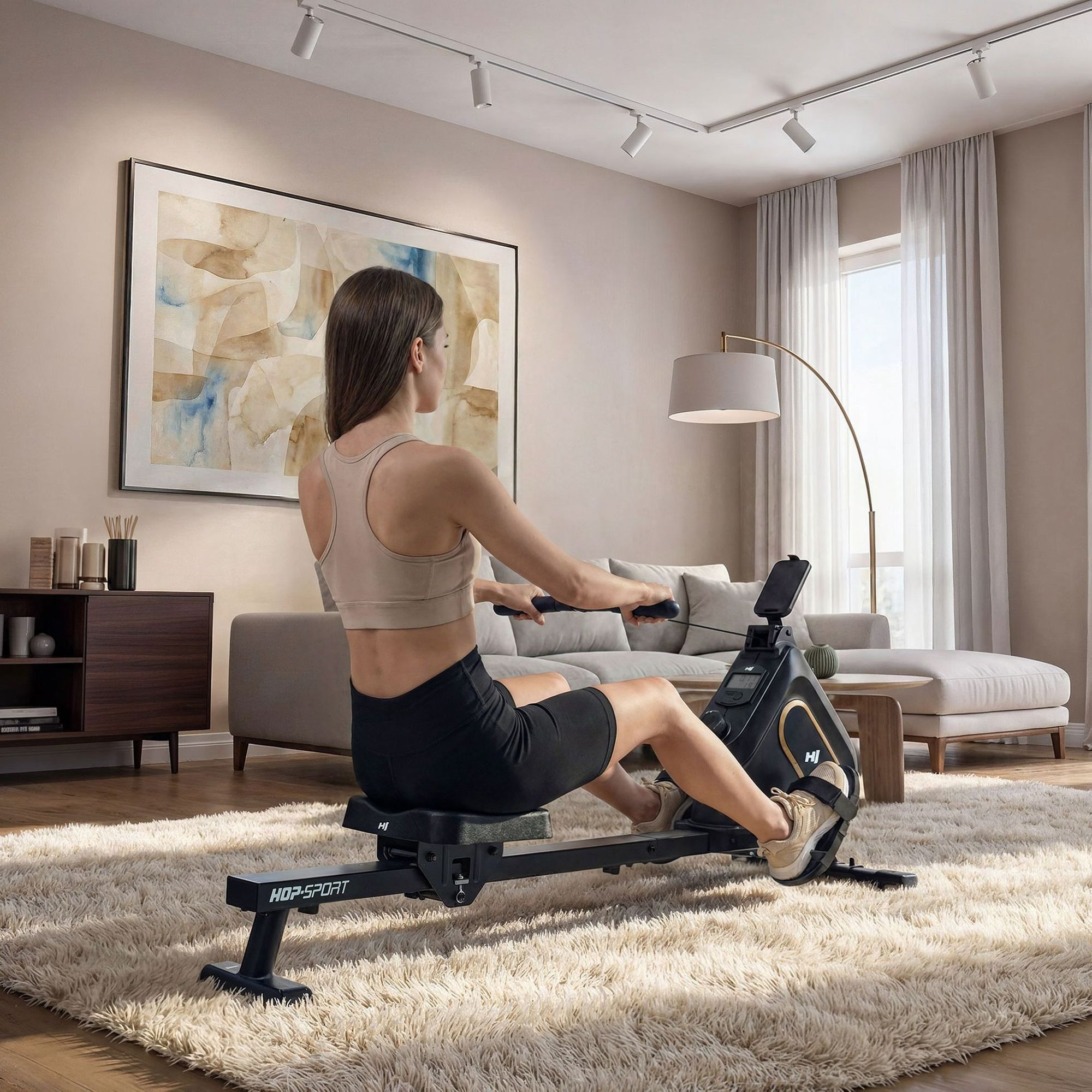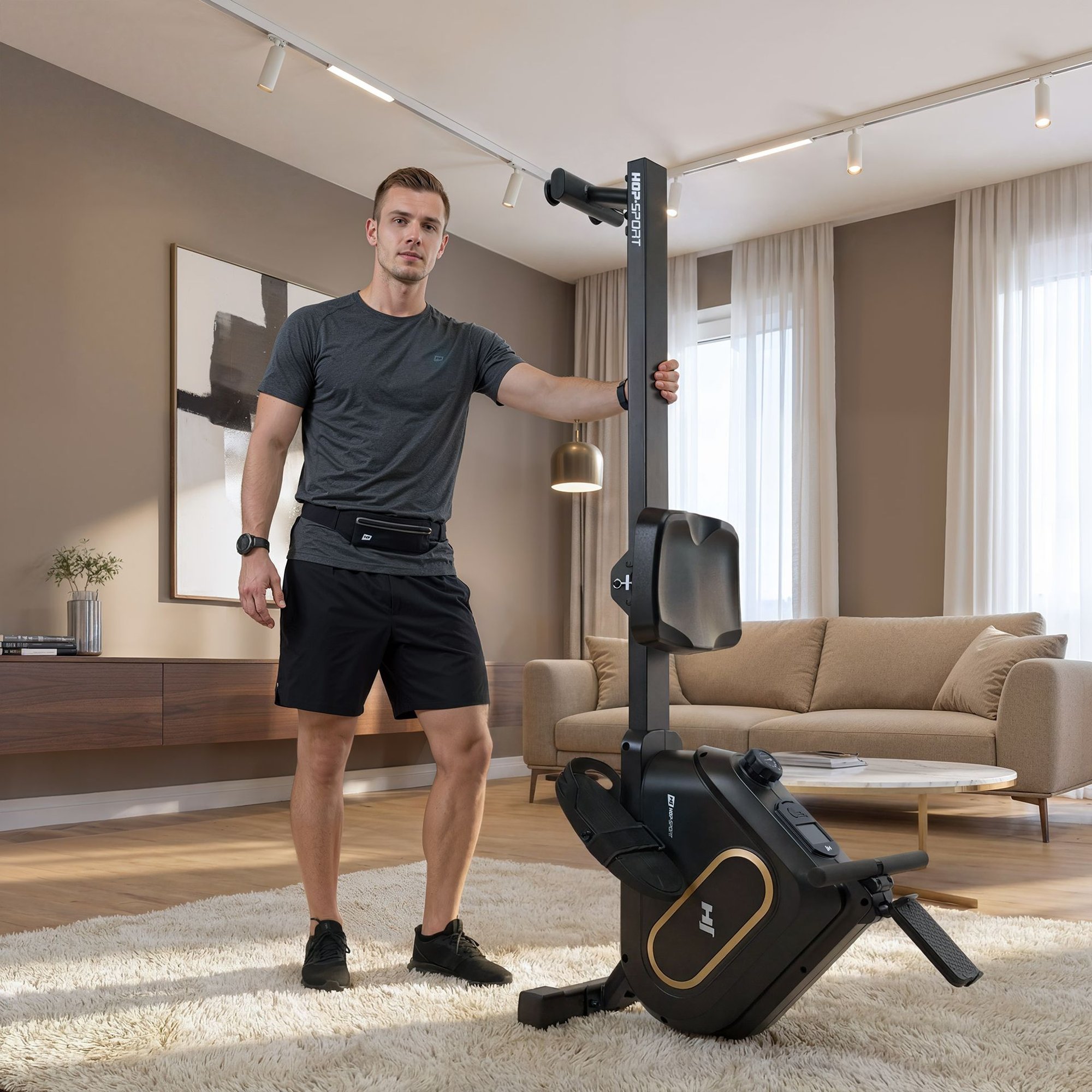 Leises und platzsparendes Rudergerät HS-085R mit 16 Widerstandsstufen, robuster Bauweise und Kinomap-App-Unterstützung für ein effektives Training in den eigenen vier Wänden.