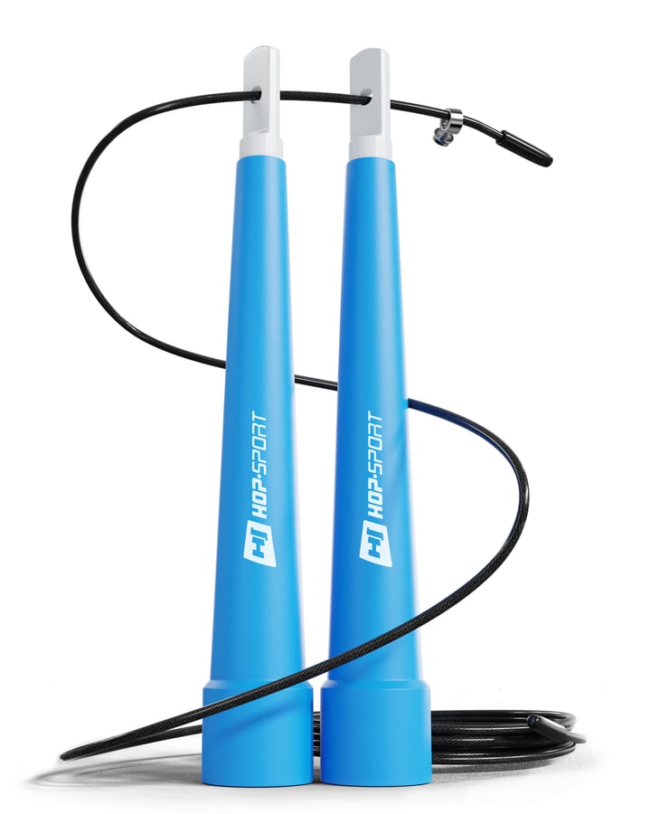 Springseil aus Kunststoff, Hop-Sport, bequeme PP-Griffe, Seillänge 300 cm, Metallseil, kostenlose Lieferung, Blau