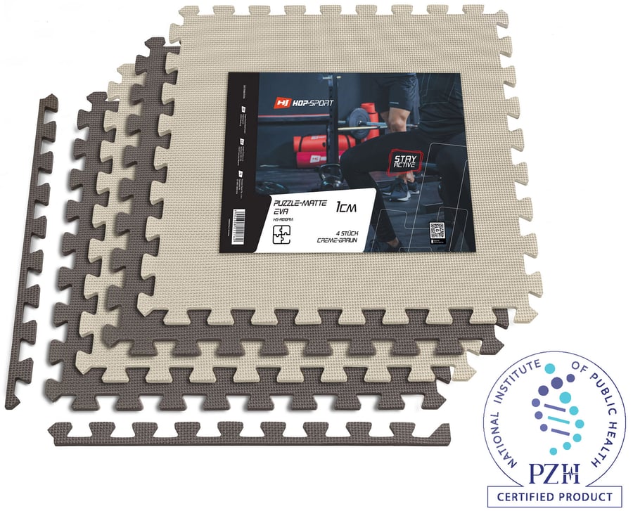 Puzzlematte von Hop-Sport, EVA 1cm - 4 Stück, Bodenmatte für Fitnessraum&Fitnessgerät, Wasserabweisend, Zertifiziertes Produkt, kostenlose Lieferung, Braun/Beige