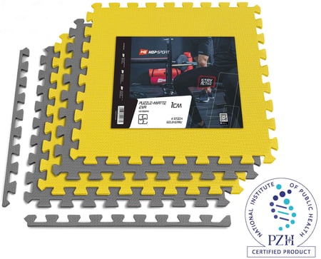 Puzzlematte von Hop-Sport, EVA 1cm - 4 Stück, Bodenmatte für Fitnessraum&Fitnessgerät, Wasserabweisend, Zertifiziertes Produkt, kostenlose Lieferung, Grau/Gelb